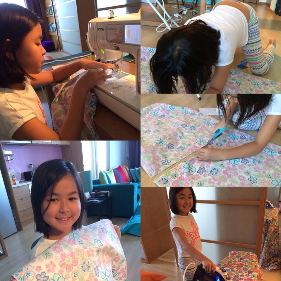 Kids proudly modelling their mothers creations